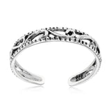 Step out in style with the Sterling Silver Fancy Oxidized Toe Ring. Intricately crafted, this toe ring features a fancy oxidised design that adds a rustic and vintage-inspired flair to your style. Made from sterling silver, the ring not only offers a unique and eye-catching accessory for your toes but also ensures durability and timeless appeal. Perfect for showcasing your free-spirited and fashionable side, the Sterling Silver Fancy Oxidized Toe Ring is a delightful addition to your collection of jewellery, adding a subtle yet distinctive accent to your summer look.
