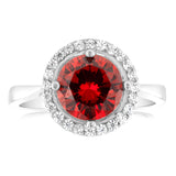 This gorgeous Sterling Silver Fancy White And Garnet Zirconia Ring is bound to add an element of luxury to your look. Featuring a garnet zirconia complemented by a circle of white zirconia and fastened on a durable sterling silver ring, this elegant addition will elevate any outfit.