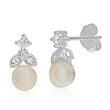 These beautiful Sterling Silver Freshwater Pearl and Zirconia Stud Earrings are truly magical. They feature the soft lustre of freshwater pearls with hues of white and pink in a drop setting. Crafted in smooth sterling silver and finished with the sparkle of zirconia stones that have a leaf design. Finished with a push back clasp that is comfortable and easy to wear, these earrings are perfect for everyday wear.
