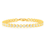 Sterling Silver Gold Plated 3mm Bezel White Cubic Zirconia 16+3cm Bracelet