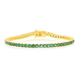 Sterling Silver Gold Plated 3mm Emerald Green Color Cubic Zirconia 19cm Bracelet