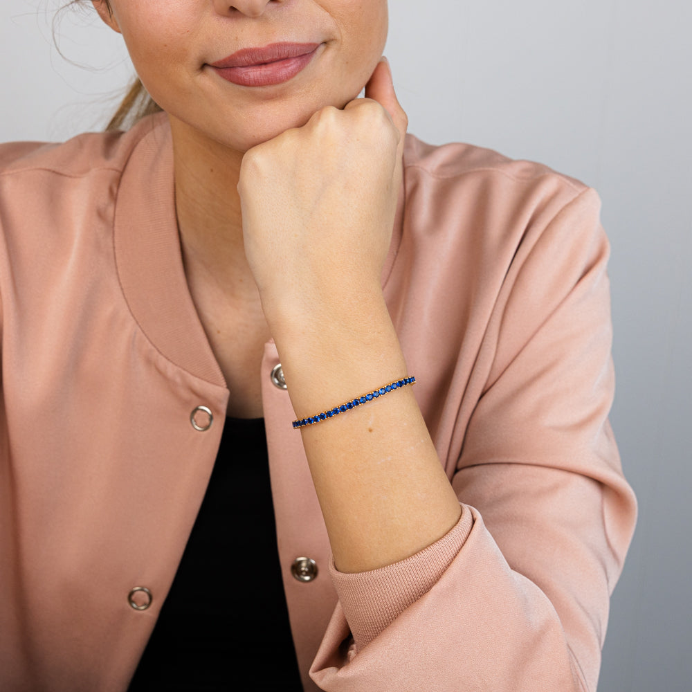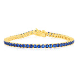 Sterling Silver Gold Plated 3mm Sapphire Blue Cubic Zirconia 19cm Bracelet