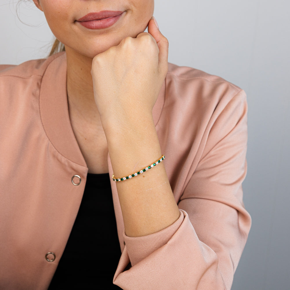 Sterling Silver Gold Plated 3mm White And Emerald Green Cubic Zirconia 19cm Bracelet