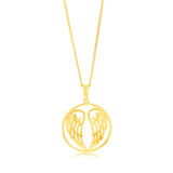 Sterling Silver Gold Plated Angel Wings Round Pendant