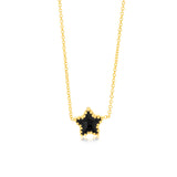 Sterling Silver Gold Plated Black Enamel Star Pendant on 42+3cm Chain
