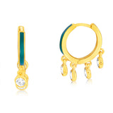Exuding a bright allure and playful shine, these Sterling Silver Gold Plated Cubic Zirconia Blue Enamel Hoop Earrings are a treat. Boasting polished zirconia stones on strong sterling silver hoops glistening in gold, these earrings blend simplicity with the chic look. Complete with an easy clasp and a light blue enamel strip for a subtle pop of colour, these hoop earrings are designed to complement any outfit.