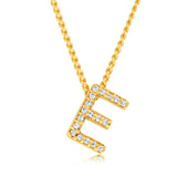 Make a statement with this exquisite Sterling Silver Gold Plated Cubic Zirconia Initial "E" Pendant on a 42cm Chain, a charming accessory that combines elegance with personal flair. Crafted from high-quality sterling silver and adorned with sparkling cubic zirconia stones, this pendant exudes sophistication and adds a touch of glamour to any outfit. The gold plating enhances its allure, while the meticulously crafted initial "E" design adds a personalised touch, making it a perfect gift or a stylish addition to your own jewellery collection. Suspended from a 42cm chain, this pendant sits delicately around the neck, effortlessly complementing both casual and formal looks with its timeless appeal and refined craftsmanship.