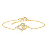 Sterling Silver Gold Plated CZ Double Heart Bracelet