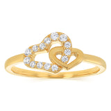 Sterling Silver Gold Plated CZ Double Heart Ring