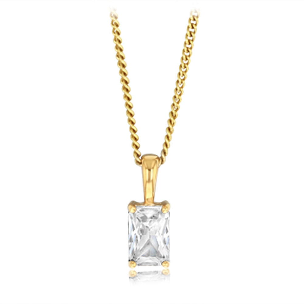 Sterling Silver Gold Plated Emerald Cut Cubic Zirconia Pendant