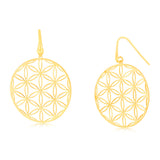 Sterling Silver Gold Plated Flower Of Life Hook Earrings