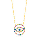 Sterling Silver Gold Plated Multicolour Zirconia Evil Eye Pendant on 45.7cm Chain