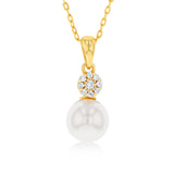 Enhance your ensemble with the timeless elegance of this Sterling Silver Gold Plated Pearl and Cubic Zirconia Pendant on a 45cm Chain, a sophisticated piece that exudes grace and luxury. Crafted from lustrous sterling silver and adorned with a radiant pearl and shimmering cubic zirconia stones, this pendant captures refined beauty effortlessly. The gold plating adds a touch of warmth and richness to the design, while the 45cm chain ensures a perfect fit for any neckline. Whether worn as a standalone statement piece or layered with other necklaces for a more personalised look, this pendant embodies understated glamour and sophistication, making it a versatile addition to any jewellery collection.