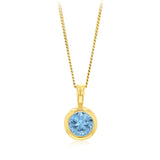Sterling Silver Gold Plated Round Bezel Set Blue Cubic Zirconia Pendant