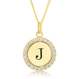 Personal and polished, this Sterling Silver Gold Plated Round Initial "J" Pendant On 45cm Chain is the perfect everyday piece. Crafted from sterling silver with a radiant gold-plated finish, this pendant features a round disc engraved with the letter "J", surrounded in a halo of sparkling zirconias. Suspended from a 45cm chain, it’s ideal for wearing solo or layering with other favourites for a look that’s uniquely yours. This darling necklace offers a stylish way to showcase your identity.