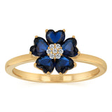 Sterling Silver Gold Plated White And Sapphire Blue Flower Ring