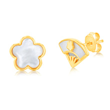 Sterling Silver Gold Plated White Shell Pearl Mismatched Stud Earrings
