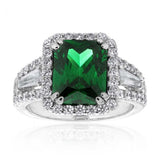 Sterling Silver Green and White Zirconia Halo Cushion Cut Ring