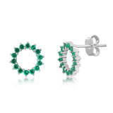 Sterling Silver Green Cubic Zirconia Circle Of Life Stud Earrings