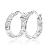 A modern twist on a classic design, these Sterling Silver Hoop Greek Key Earrings are completely their own. Featuring a Greek-inspired pattern that is super fashionable, these earrings are a fun play on a basic silver hoop. Finished with a latch back clasp that is comfortable and reliable, you can easily wear these earrings everyday to elevate your daily outfits.