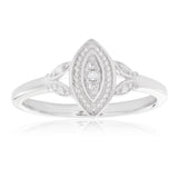 Sparkle into the night with this breathtakingly beautiful Sterling Silver Diamond Ring. With a marquise shaped diamond giving the illusion of larger brilliant cut diamond and it’s sure to have onlookers mesmerised at first sight.