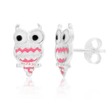 Nothing beats these adorable Sterling Silver Owl Pink Stud Earrings. Perfect for little ones, whether it is a birthday or christmas, these studs will be loved! Featuring two little sweet owls that are complete with a pop of pink, they have character, yet are subtle. Sterling silver is perfect for sensitive ears and the push back clasp is comfortable for daily wear.