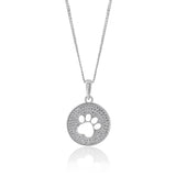 Sterling Silver Paw Print Zirconia Disc Pendant
