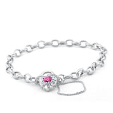 With a sparkling pink cubic zirconia, this padlock bracelet is a must-have. With the pink cubic zirconia in a lovable heart shape, you are sure to feel the love with this 19cm bracelet.