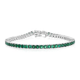 Sterling Silver Rhodium Plated 3mm Emerald Green Coloured Cubic Zirconia 19cm Bracelet