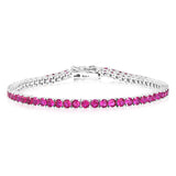 Sterling Silver Rhodium Plated 3mm Ruby Colored Zirconia 19cm Bracelet