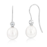 Soften your look with these Sterling Silver Rhodium Plated 8.5-9mm Oval Fresh Water Pearl And Zirconia Hook Earrings. With a flawless polished finish, these pearl and zirconia hook earrings will ensure to have your ears glistening. Whether you’re in the office or enjoying a night out, these pearl and zirconia earrings will complete your outfit. Lightweight and durable, these earrings guarantee a comfortable wearing experience.