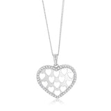 Sterling Silver Rhodium Plated Cubic Zirconia Patterned Heart Pendant