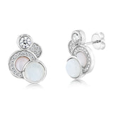 Sterling Silver Rhodium Plated Cubic Zirconia Pink Shell Pearl Moonstone Fancy Stud Earrings
