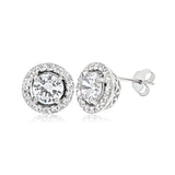 Sterling Silver Rhodium Plated Cubic Zirconia Round Stud Earrings