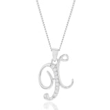 Enjoy timeless style with this Sterling Silver Rhodium Plated CZ Script X Initial Pendant. Crafted in the cool tones of rhodium plated sterling silver, this pendant is durable and high quality. The X script font is gorgeous, and the piece is embellished with glittering cubic zirconia stones that add a touch of glamour to the look. Spoil yourself or someone special with a piece that is truly timeless.