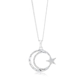 Sterling Silver Rhodium Plated Cubic Zirconia Star And Moon Round Pendant