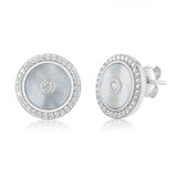 Sterling Silver Rhodium Plated Cubic Zirconia White Shell Pearl Round Stud Earrings