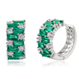 Fall in love at first sight with these endearing Sterling Silver Rhodium Plated Emerald Green And White Cubic Zirconia Hoop Earrings that are both striking and empowering in their endlessness. With a height of 15.2mm, they sit close to the ear with an end-to-end loop that clicks effortlessly together to form a perfect circle. The freedom of design is evident at every angle with a play of brilliant cut and emerald cut zirconia stones that adorn the face of these beauties, balanced by a multitude of contoured shapes etched on the opposite side. The subsequent mix of white and emerald-green tones adds an unmistakable flow that dresses up the humble hoop and turns it into a timeless classic reminiscent of absolute elegance.