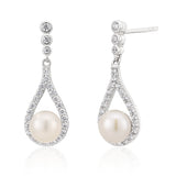 Sterling Silver Rhodium Plated Freshwater Pearl and Zirconia Teardrop Earrings