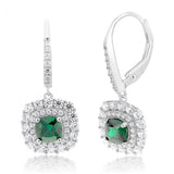 Feel special in these Sterling Silver Rhodium Plated Green And White Cubic Zirconia Cushion Drop Earrings. Set with beautifully cut green zirconia, these earrings are full of rich colour and shine. Halos of white zirconia and rhodium-plated silver offer a bright sparkle and glamorous finish.