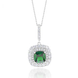 Give yourself or someone special a vibrant sparkle with this Sterling Silver Rhodium Plated Green And White Cushion Pendant. Zirconia gemstones are known for their amazing shimmer, and both coloured stones show off that famous gleam. Rhodium plating gives this stunning pendant a bright finish and resistance to tarnish.