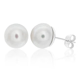 Sterling Silver Rhodium Plated Pearl Stud Earrings