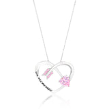 Fall in love with this Sterling Silver Rhodium Plated Pink CZ Arrow Heart With Inscription Pendant. Set with a set of stunning pink zirconia and lush rhodium plating, this romantic pendant will make your heart skip a beat. The words, "You are my angel" are inscribed neatly into the shiny silver.