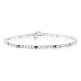 Sterling Silver Rhodium Plated Round White Zirconia And Created Ruby 16.5+3cm Tennis Bracelet