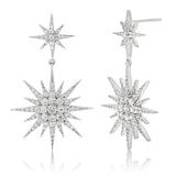 Sterling Silver Rhodium Plated Starburst Cubic Zirconia Drop Earrings