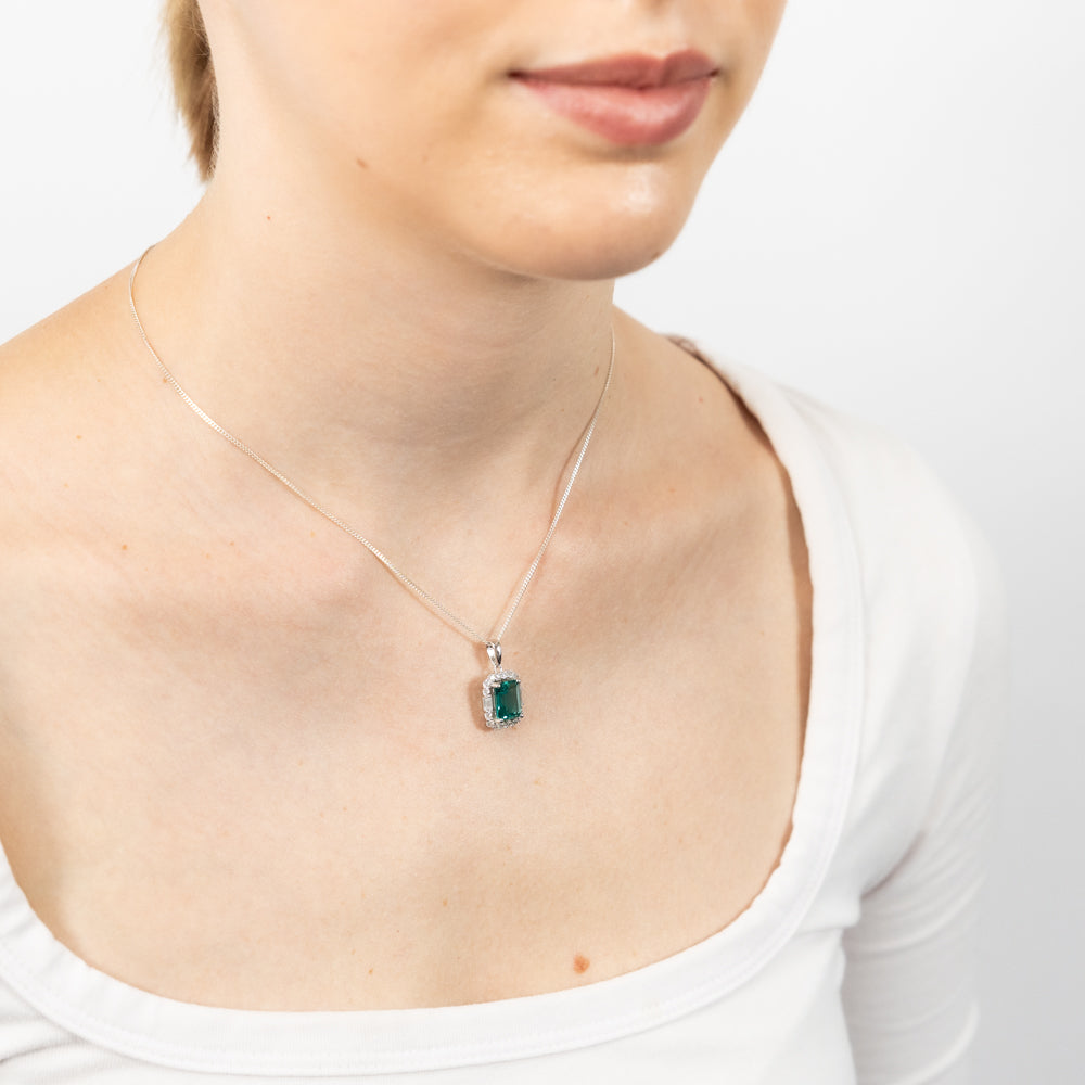 Gemstone:Emerald, cubic zirconiaMaterials:Sterling silverSub category:Pendants