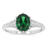Sterling Silver Rhodium Plated White And Green Cubic Zirconia Ring
