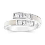 Sterling Silver Rhodium Plated White Shell Pearl And Cubic Zirconia Crossover Ring