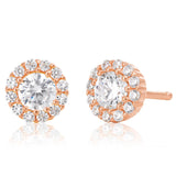 Sterling Silver Rose Gold Plated Cubic Zirconia Brilliant Cut Halo Stud Earrings