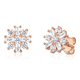 Sterling Silver Rose Gold Plated White Cubic Zirconia Flower Stud Earrings